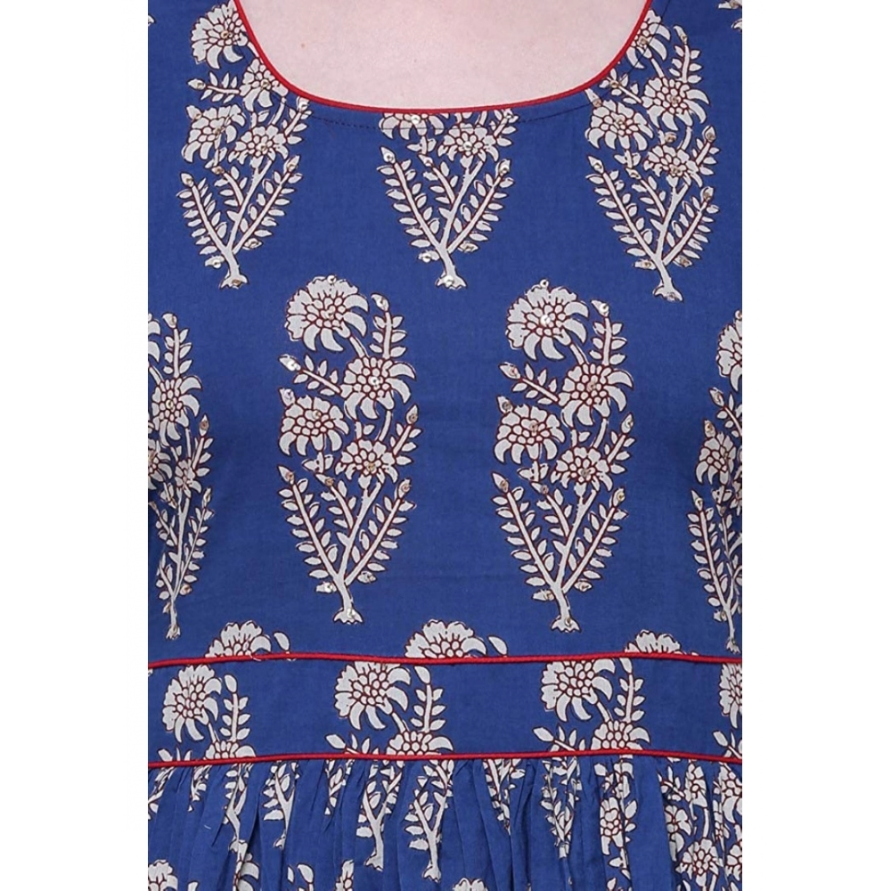 Women's Cotton Printed Anarkali Kurti (Blue, Cotton)